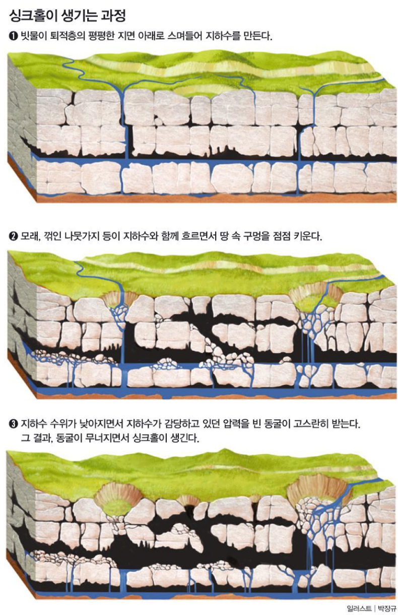 싱크홀은 지반이 갑자기 꺼지면서 발생하는 현상으로,